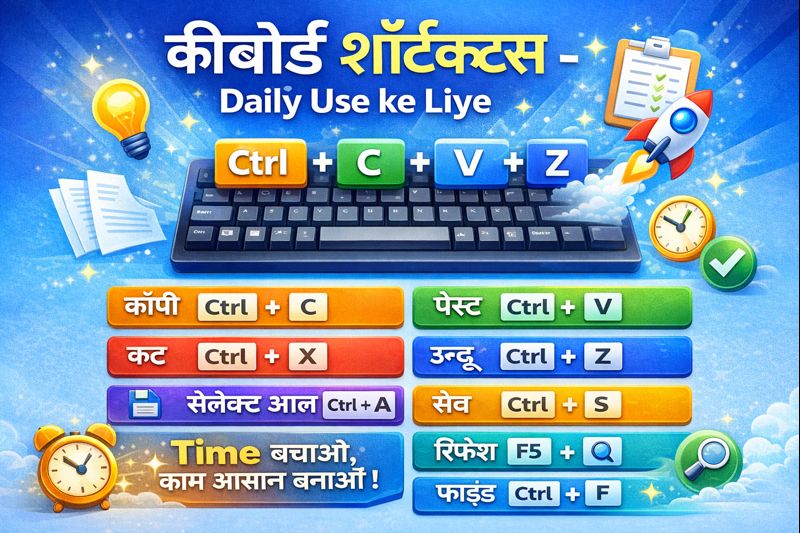 Aaj ke digital time me har kaam computer par hota hai — chahe office work ho, online study, browsing ya content creation. Agar aap keyboard shortcuts seekh lete ho, toh aap apna kaafi time bachaa sakte ho aur kaam bahut fast & professional tareeke se kar sakte ho. Basic keyboard shortcuts specially beginners ke liye bahut helpful hote hain, kyunki ye rozana ke kaam ko simple aur easy bana dete hain.